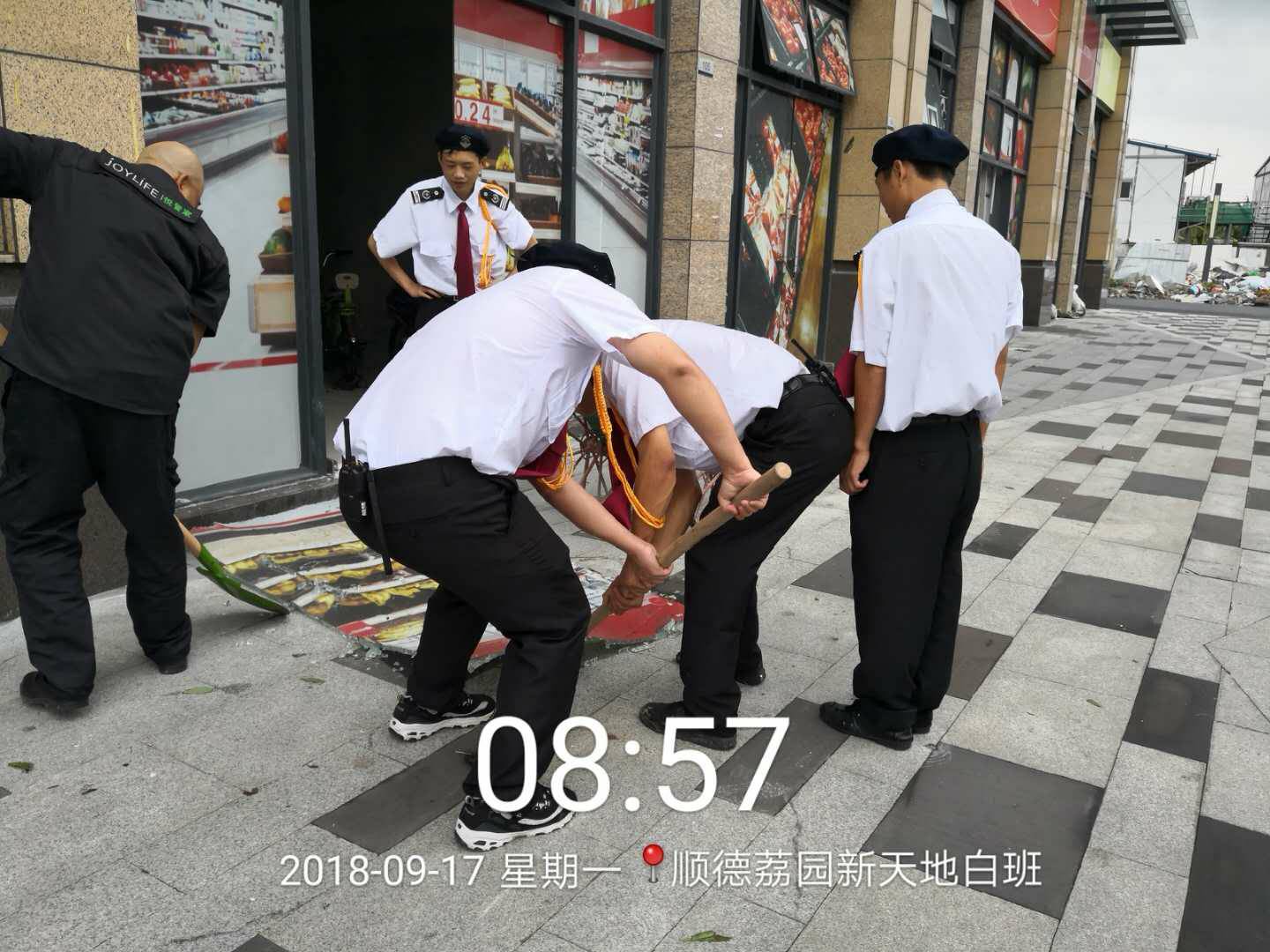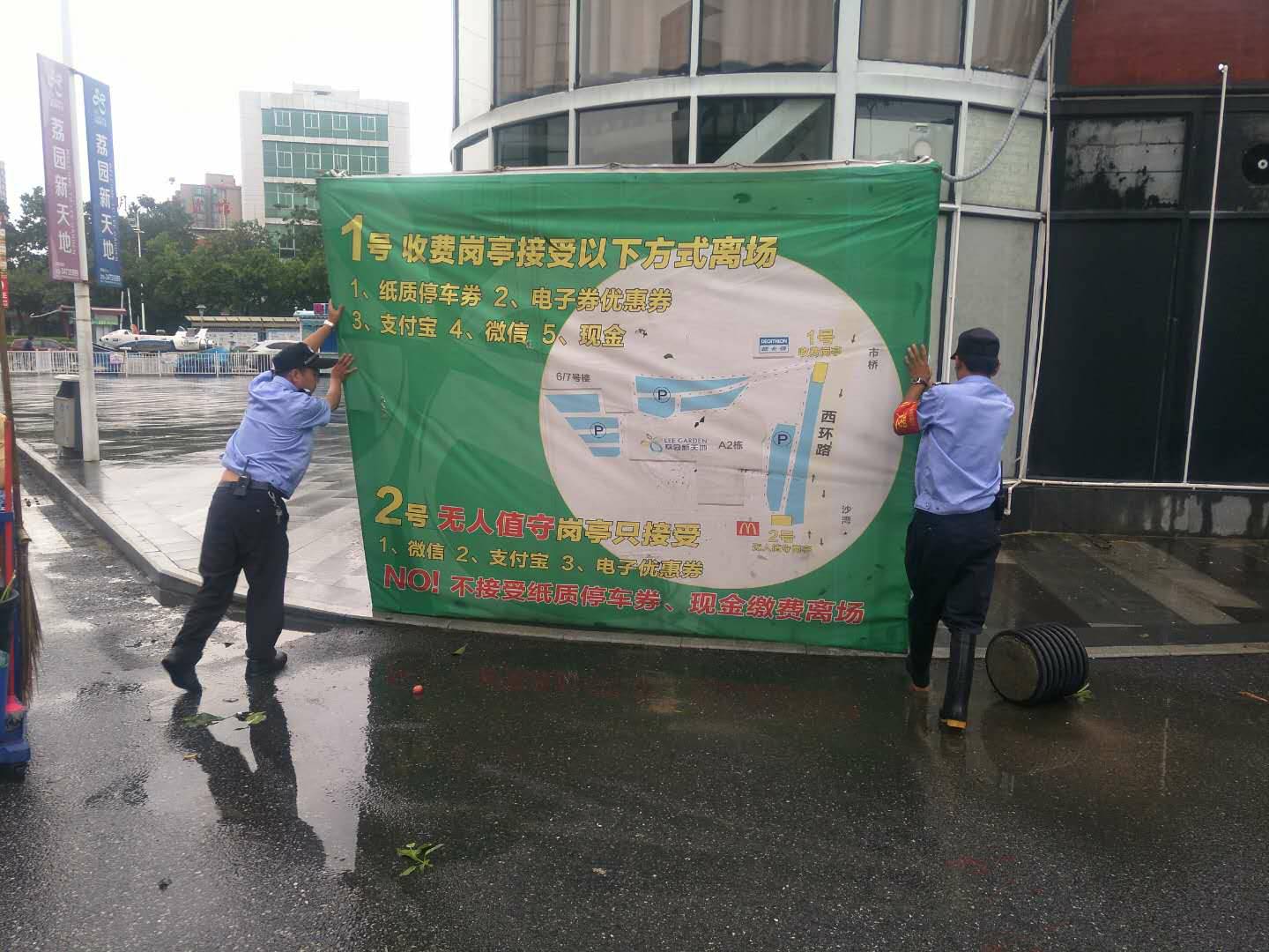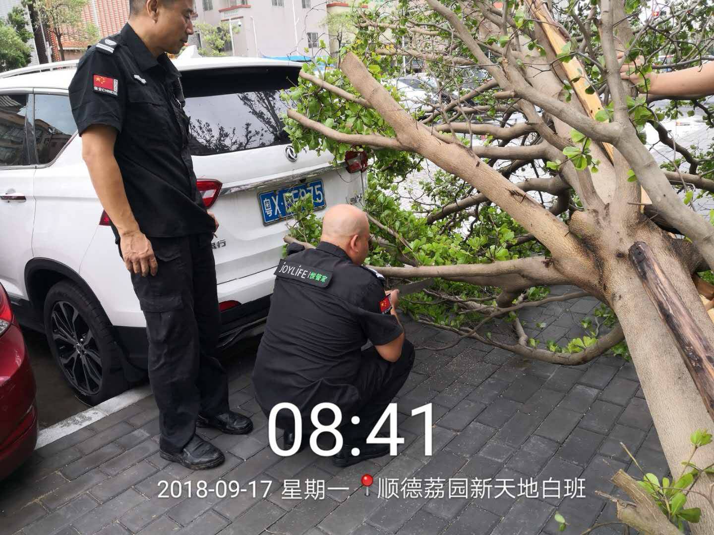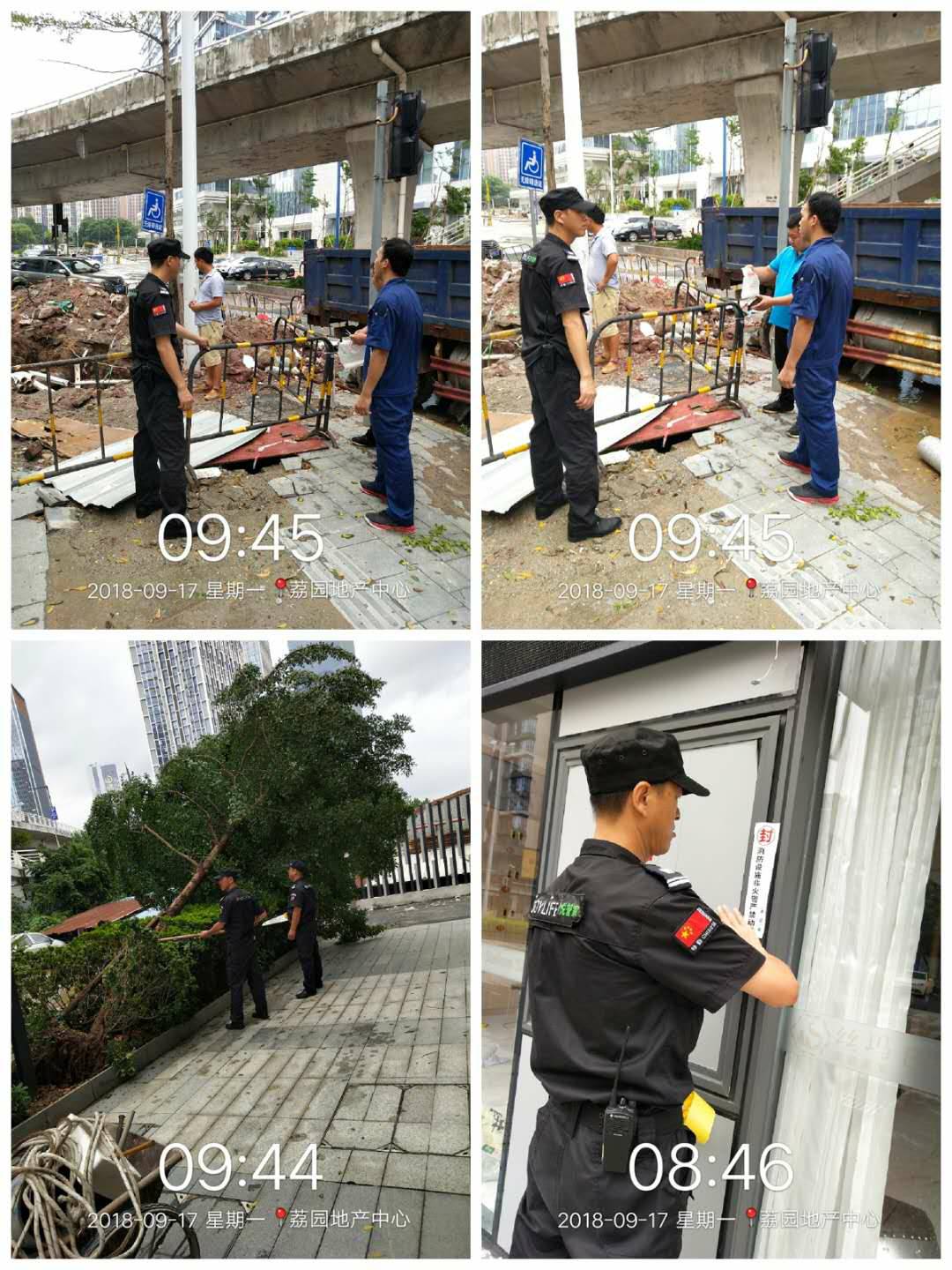 安保和后勤的值守工作人员,冒着风雨抢险救灾,保证交通顺畅,狂风中,他们迎风而上, 不怕脏不怕累,众志成城,任功任怨的羊城安保精神,值得表扬!